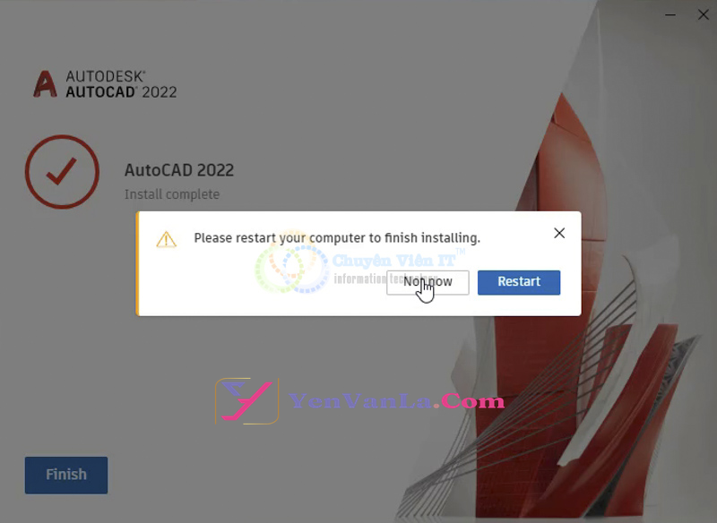 Trên đây là hướng dẫn chi tiết cách cài đặt và kích hoạt bản quyền phần mềm AutoCAD 2022. Nếu gặp khó khăn, bạn có thể xem video hướng dẫn hoặc liên hệ với YenVanLa.Com để được hỗ trợ. Chúc các bạn cài đặt thành công và sử dụng hiệu quả phần mềm!
